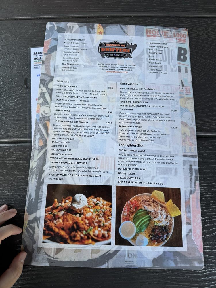 Welcome to Drifters, a dive bar that perfectly captures the vibrant spirit of Nashville! Nestled at 1008B Woodland St, this venue is not just about great music but also about mouthwatering dishes that echo the comfort of home. The menu boasts delightful starters like smoked wings and fried pickles, while hearty entrees feature their famous St. Louis ribs—slow-smoked and tender enough to fall off the bone.
